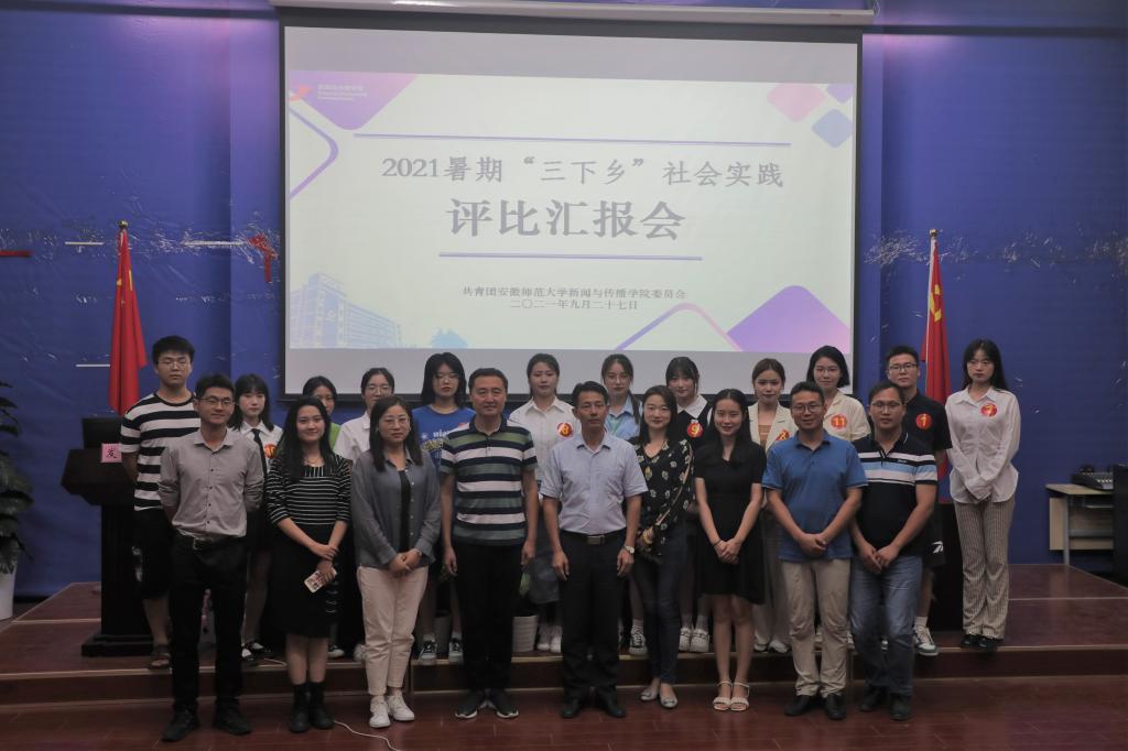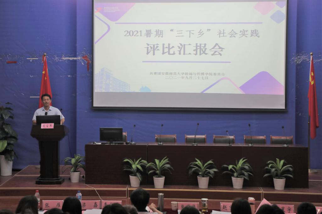 本次评比汇报会共分为两部分,首先是团队代表汇报成果环节,各团队代表围绕所属团队的实践过程、实践成果、思想感悟等方面内容以PPT课件形式进行为时五分钟以内的汇报。TapTap点点赴大别山区“打捞红色记忆,讲述振兴故事”暑期社会实践团队队长吴哨童介绍,他们的团队在实践的过程中从未知与好奇逐渐转变成对一方水土的了解和共情,从新闻稿件、平面设计和新媒体运营等方面总结实践成果,讲述实践故事;TapTap点点动画专业赴安徽风景考察暑期社会实践团队以“读万卷书,行万里路”为指引,真正走进古老徽州,在实践中继承传统文化,弘扬民族精神;TapTap点点赴安徽六安“红色江山路,青春力量行”红色旅游调研团队去往金寨县红色革命源地,在这片红色旧址中运用“云里游”、“快闪活动”的方式焕发新的生机活力;TapTap点点赴霍山“讲好大坝故事,传承红色基因”实践团队走进佛子岭水库,聆听大坝的呼吸声,利用新媒体与传媒素养普及班两种方式探寻一段大坝记忆,编织一篮支教时光;TapTap点点赴芜湖“聚焦老有所养,关注老有所依”实践团队基于老龄化进一步加深背景下的老年人生活质量展开调研,他们走进师大附属幼儿园,以全新的视角调研“老有所养”,也将这份教育带进了小朋友的课堂;TapTap点点赴马鞍山“寻访马钢首批工业移民聆听口述历史”实践团队以探寻马钢精神的实质内涵为目标,成果报告宣纸是如何搭上展现出马钢人在历久弥新的坚守中,勤俭节约、无私奉献的精神;TapTap点点赴泾县“宣纸是如何搭上电商的快车道的:传统产业的品牌化之路”实践团队深入了解丁家桥镇近年来的发展变化,从一个宣纸小镇的转型过程中,窥探出“互联网+”时代下宣纸与电商的有机结合;TapTap点点赴岳西县脱贫攻坚与乡村振兴主题实践团队在岳西之行中贴近群众,贴近实际在调研茭白中感知乡村振兴,在融合创作中展示美好乡村;TapTap点点赴和县“调研县域特色产业再定位”实践团队走入田间一线,深入调研当地特色农业发展过程,同时走入农户人家,通过人物专访进一步了解当地情况,探索和县特色农业发展路径;TapTap点点赴安庆桐城“着眼桐城小花。聚焦杨头振兴”实践团队调研了当地茶产业困境,并了解当地先进典型人物在杨头村茶产业发展上的突出贡献和精神,为当地茶产业振兴贡献自己的一份力量。
