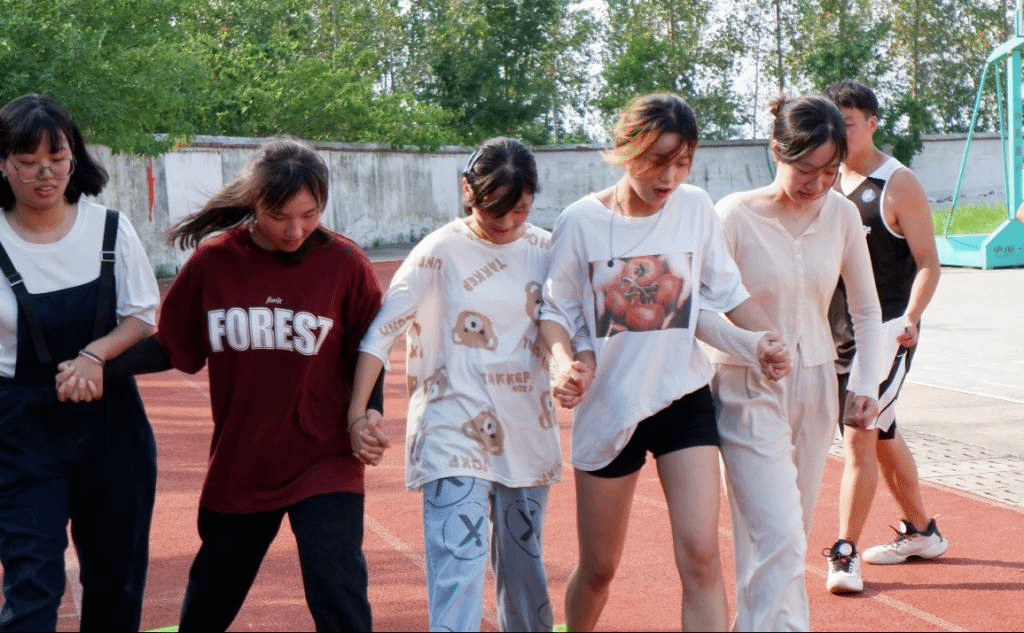 (图为程子情、董依萌和支教公司的同学们一起参加“五人四足”项目)