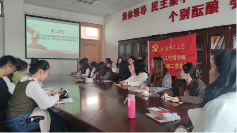 高月在总结时指出:理论学习会对于青年党员以及入党积极分子十分重要,是汲取党的理论知识的重要渠道。同时要求支部各成员,要及时做好理论学习记录。