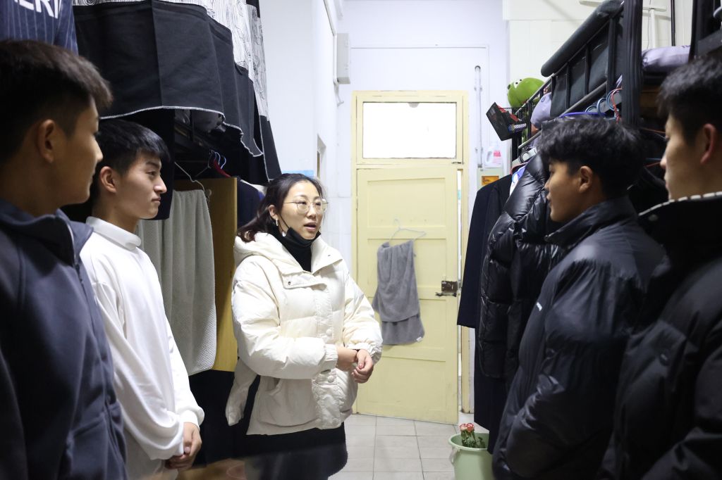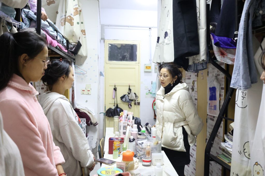 12月2日晚上,辅导员张雁和生活辅导员俞应芬率队突击检查员工宿舍进行安全隐患排查,以违禁电器、违规用电、宿舍卫生、物品整理等为重点检查内容,逐间宿舍强调用电规范、健康作息,鼓励大家营造美好、融洽的寝室氛围。