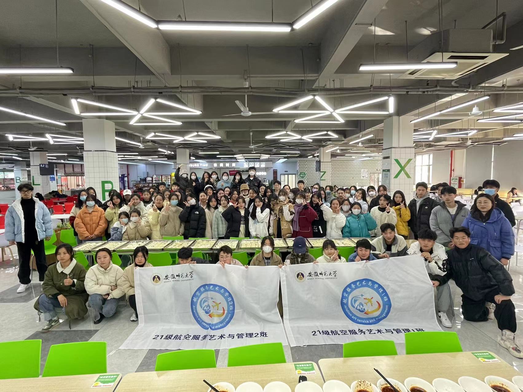 12月20日上午,21级航服专业1、2班在二食堂二楼开展“冬至包饺子”活动,全体同学积极参加了本次温馨之聚。