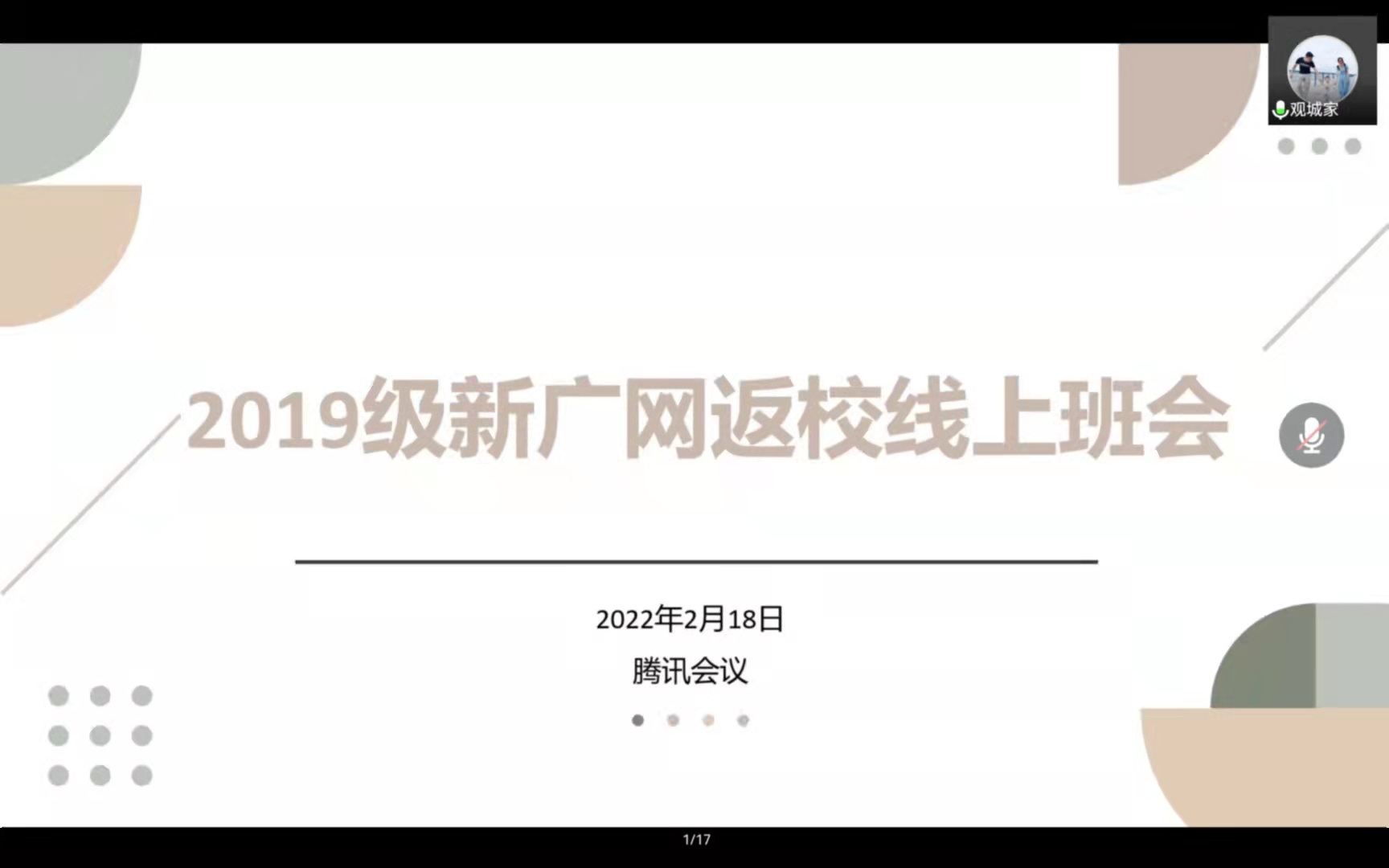 为落实疫情防控工作,做好新学期开学准备,2月18日,19级新广网专业辅导员马星宇老师于线上主持召开三个专业的返校线上主题班会。全体19级新广网专业同学参加会议。