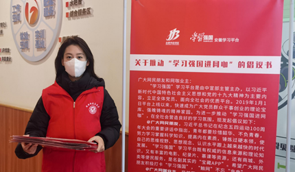 过年前夕,臧永梅婷同学响应社区号召,参与成为一名“学习强国”进网咖志愿活动的志愿者。她的主要工作是引导网咖顾客扫码下载“学习强国”APP并完成注册,成功注册的顾客可以领取社区准备的春联、日历等暖心礼品。