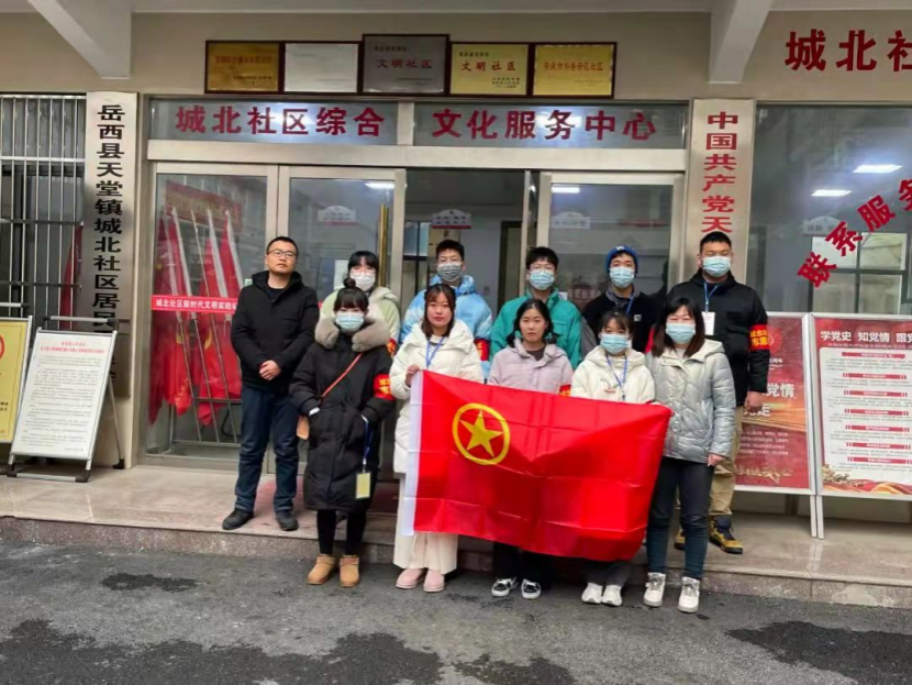 同样在今年寒假,一支由老员工兼职副书记牵头,社区返乡老员工、青年志愿者参加的11人志愿服务小分队迅速在岳西县天堂镇城北社区集结。来自2019级广告学专业的王再思便是其中的一员。