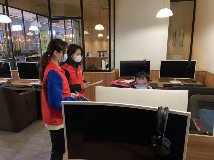 推动“学习强国”进网咖。过年前夕,来自2020级广告学专业的臧永梅婷响应社区号召,参与成为一名“学习强国”进网咖志愿活动的志愿者。她的主要工作是引导网咖顾客扫码下载“学习强国”APP并完成注册,成功注册的顾客可以领取社区准备的春联、日历等暖心礼品。“网咖内的顾客听闻后非常愿意配合我们的工作,向他们发放礼品时能感受到浓浓的新年气息,大家脸上都洋溢着喜悦的笑容。”她表示,很荣幸能成为志愿者的一员,日后有机会将参加更多的志愿服务活动,不断传播正能量,为社会发展贡献自己的一份力。