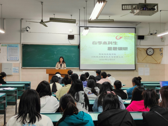 3月9日星期三晚19点,杨韵箫老师和航服3班全体同学在2050505室开展了“春季本科生思想调研”主题班会。