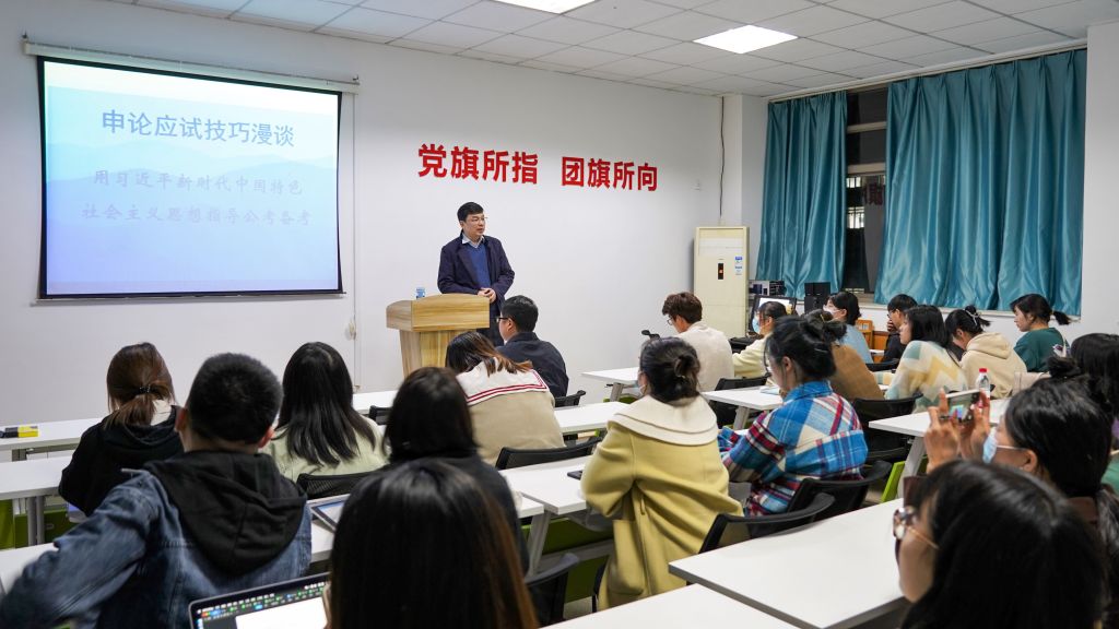 专门专题,公务员(选调生)备考指导强助力。3月10日晚7点,考公专题指导会在院楼302开展,公务员考试专家李老师为备考员工进行了一场主题为《用习近平新时代中国特色社会主义思想指导公考备考》的申论应试技巧漫谈。
