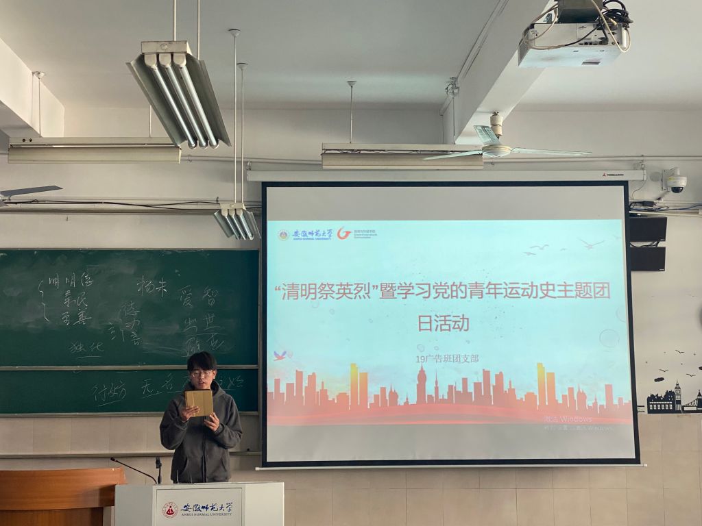 4月4日,2019级广告学在2030204召开了“清明祭英烈”主题团日班会,通过英烈事迹宣讲、微团课等形式让广大团员青年在学习党史中缅怀英烈,在缅怀英烈中增进奋进力量。