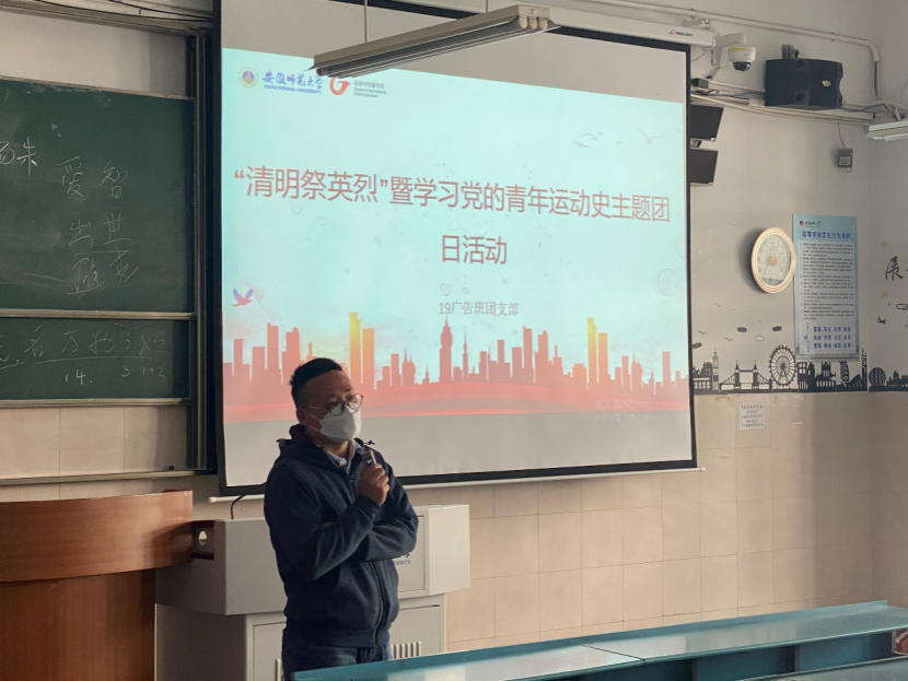 2019级摄影班团支书王姿琪通过视频与文章相结合的形式与大家分享了一些英雄事迹。她首先播放了一段新中国成立前中国如何在英雄人物的力挽狂澜下建立新中国的视频。随后讲述了共产党人龚全珍、无产阶级革命家夏明翰和抗疫时期李文亮医生的英雄事迹。这些事迹深刻的反映了英烈的丰功伟绩,弘扬了英烈的伟大精神。