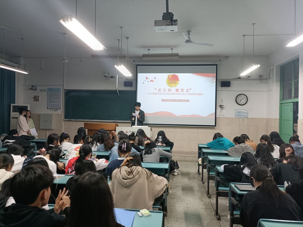 会上,大家收看了关于习近平总书记在中国人民大学考察的新闻联播。团支书洪迅洁从“以青春为桨,以梦想为帆”、“未来属于青年,青春寄于青年”、“立足新时代,新征程”三个方面进行领学,引导大家深刻感悟“两个确立”的决定性意义,增强“四个意识”、坚定“四个自信”、做到“两个维护”,为实现第二个百年奋斗目标、实现中华民族伟大复兴的中国梦凝聚起强大青春力量。会上重点学习习近平总书记重要讲话,要立足新时代新征程,坚定不移听党话、跟党走,努力成长为堪当民族复兴重任的时代新人,用脚步丈量祖国大地,用眼睛发现中国精神,用耳朵倾听人民呼声,用内心感应时代脉搏,把对祖国血浓于水、与人民同呼吸共命运的情感贯穿学业全过程、融汇在事业追求中的殷切期望。