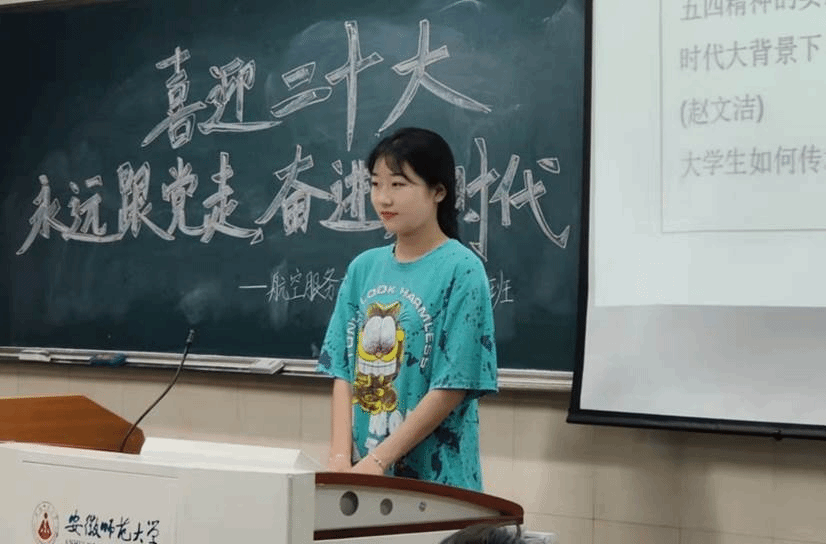 本网讯(TapTap点点 谢欣雨、赵心语)5月3日晚上七点,航空服务艺术与管理三四班在行知楼2050505教室举行了庆祝建团一百周年暨喜迎二十大主题团日活动。此次活动由三四班团支书孙盈、邹永亭主持,航服三四班全体同学参与。