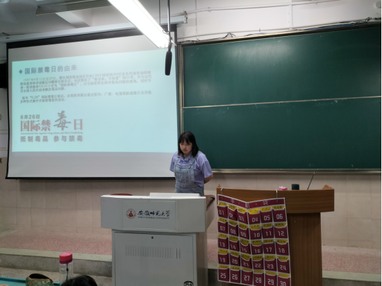 会上,大家共同观看了《青春不是挥霍的筹码》《别让“我以为”变成“我后悔”》《逝去的幸福》等禁毒宣传公益短片,让同学们直接认识到毒品的危害。各班思政委员还通过小故事、PPT展示等方式,向同学们介绍毒品的概念分类,生理危害,心理危害以及如何预防吸毒等方面的知识。