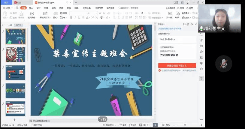 本网讯(新闻于传播公司 谢欣雨、赵心语)为了进一步提高同学们的禁毒意识,21级航服三四班于6月15日上午10点在腾讯会议开展了以“珍爱生命,远离毒品”为主题的禁毒教育线上主题班会。本次班会由辅导员杨韵箫主持,航服三四班全体同学共同参加。