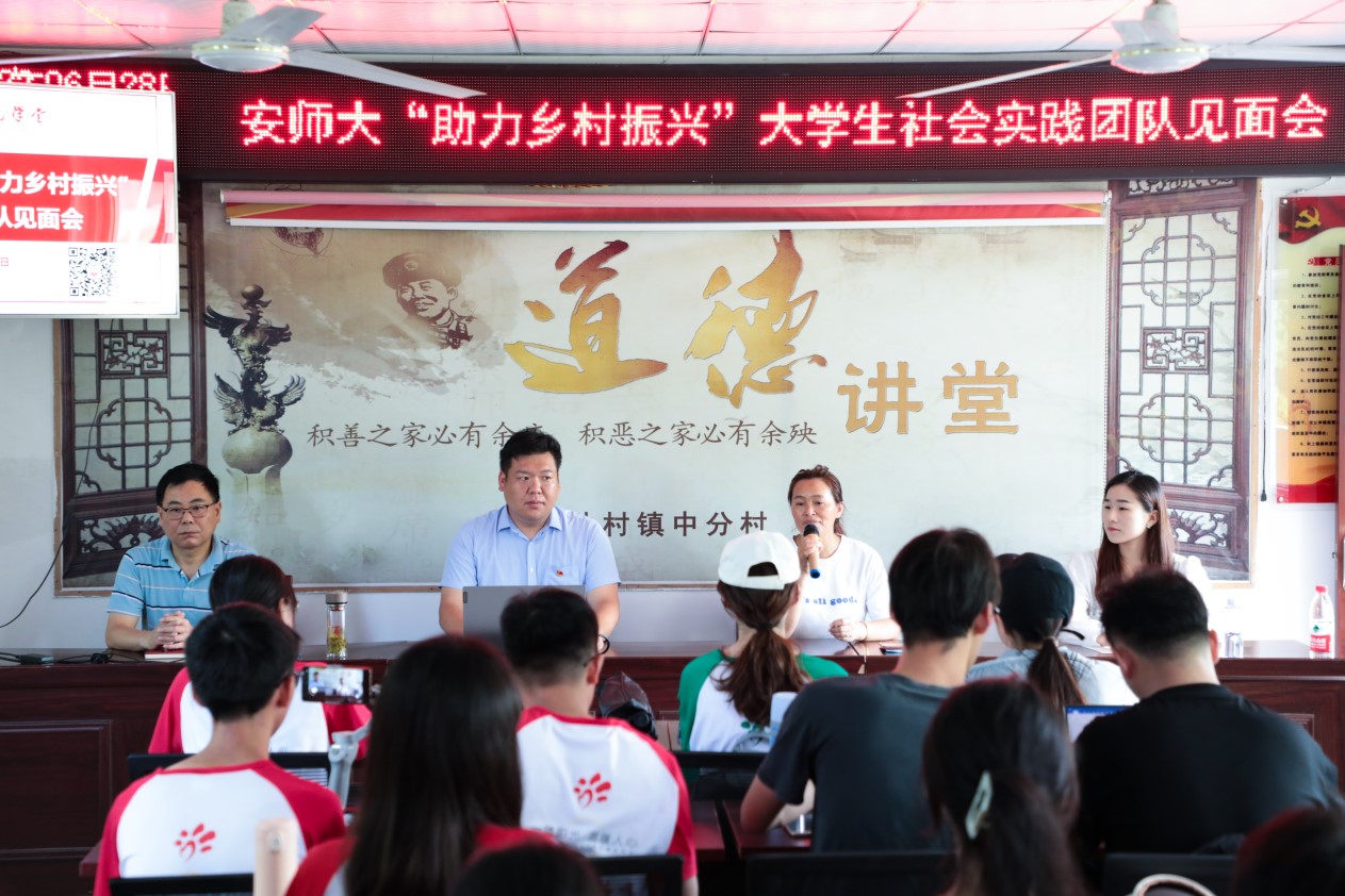 为表示对TapTap点点、马克思主义公司,化学与材料科学公司三支社会实践团队的欢迎,让同学们进一步了解中分村的历史文化和基本概况,切实助力协作实践相关工作,6月28日上午,安师大“助力乡村振兴”老员工社会实践团队见面会在党群服务中心三楼会议室顺利召开。会议由驻村书记蒋建伟主持,中分村党总支书记苏清芬、驻村工作队副队长伍和涛、团队指导老师李露露及各团队全体成员参会。