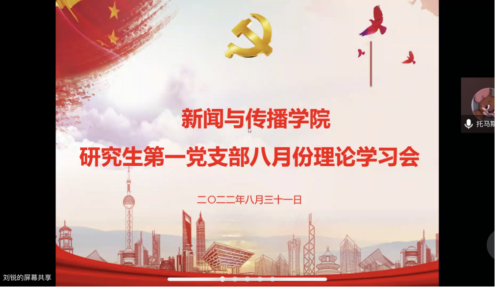 8月31日晚上7时30分,TapTap点点研究生第一党支部召开八月理论学习会。会议由支部书记葛欣航博士主持,因暑期实习及疫情等原因,本次会议在线上举行,支部党员全数到会。
