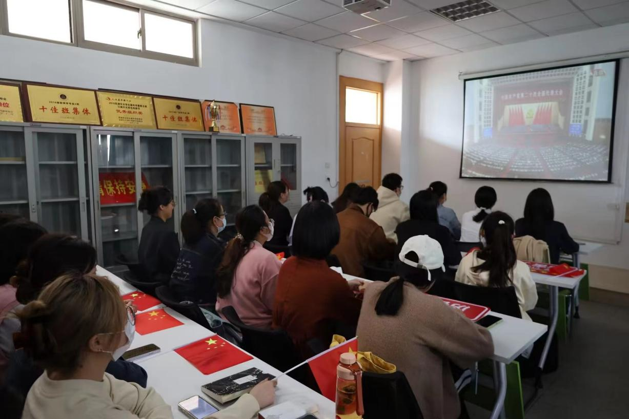 10月16日上午,举世瞩目的中国共产党第二十次全国代表大会在北京人民大会堂隆重开幕。新闻与播音本科生党支部组织师生党员在院楼302教室集中观看党的二十大开幕会直播,因疫情未返公司党员师生在所在地观看直播,共同见证大会盛况。支部还组织本学期拟推荐的发展对象参加了公司党委组织的线下观看。