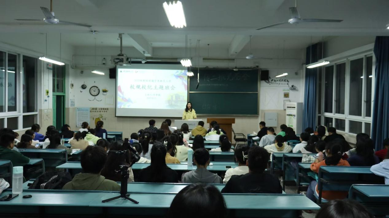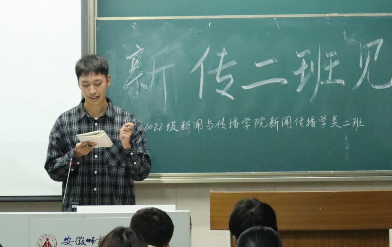 10月23日晚,2022级新传二班在行知楼5号楼302教室举办主题班会,由辅导员李梦圆和班长杨志远主持,参会人员为全体新传大类二班同学。