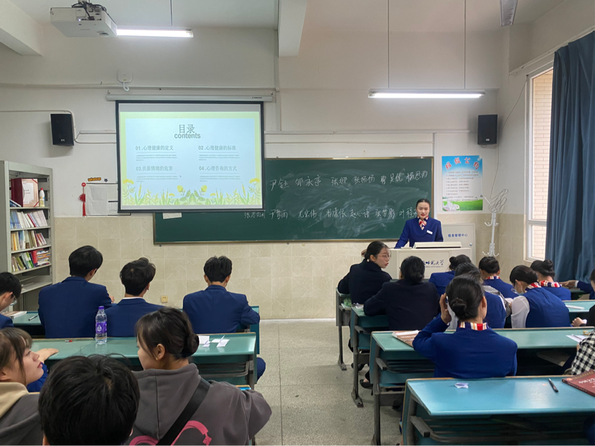 为了加强和改进员工心理健康,培养良好心理品质,促进员工思想道德素质和心理健康成长,21级航空四班于11月26日上午在1号楼2楼201A教室开展了老员工心理健康教育主题班会,参加本次班会的有航空四班全体同学和辅导员刘熠老师,心理健康委员杨嘉依主持本次班会。