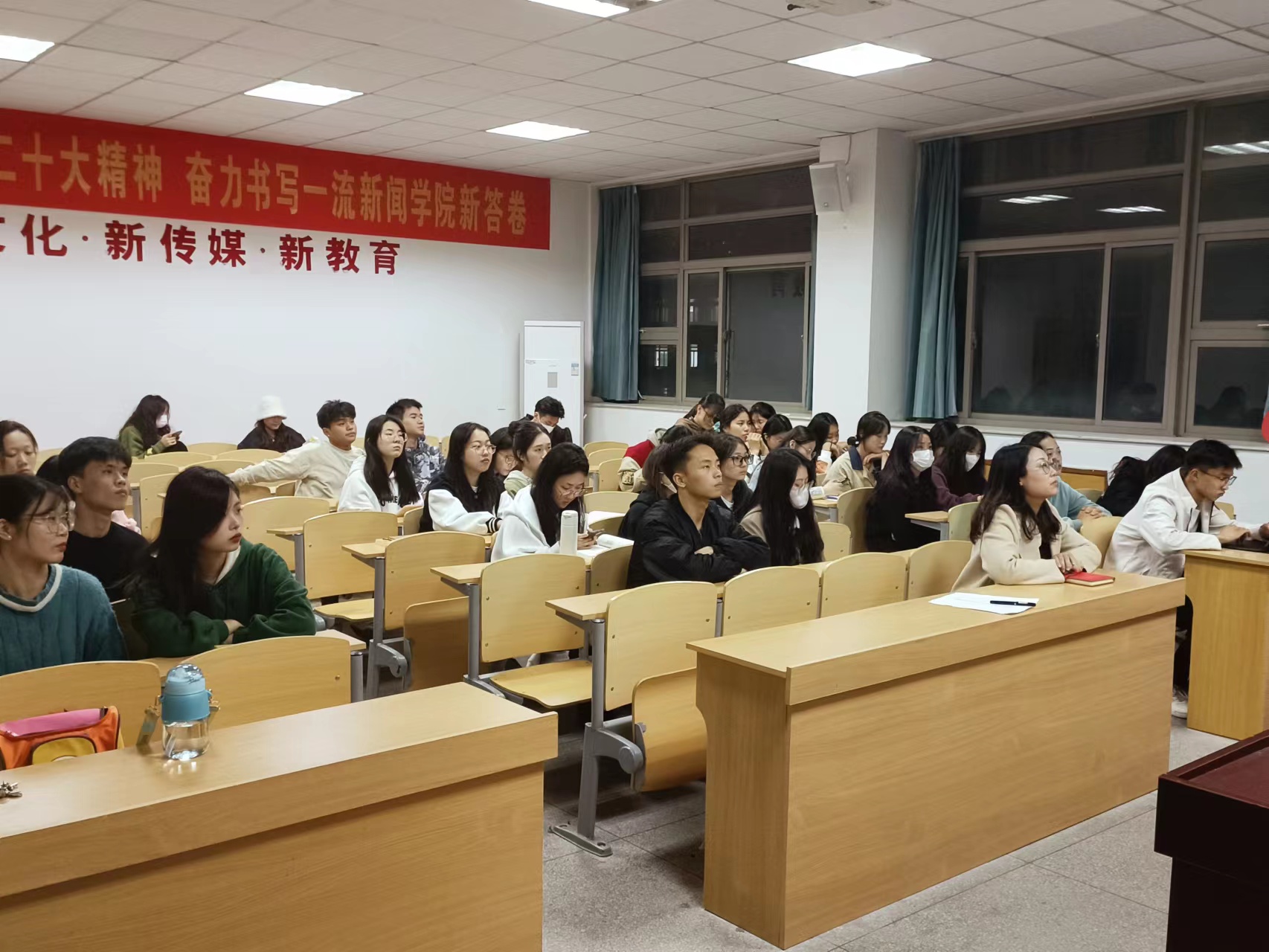 各寝室长及员工代表就近期班级同学关注的事情或动态、反映的主要诉求以及向公司公司反馈关注的个性问题逐个发言。大家对校运动会开幕式非遗鱼灯节目演出、期中考试、四六级备考、宿舍生活、专业课程设置及教学设备等方面展开座谈。