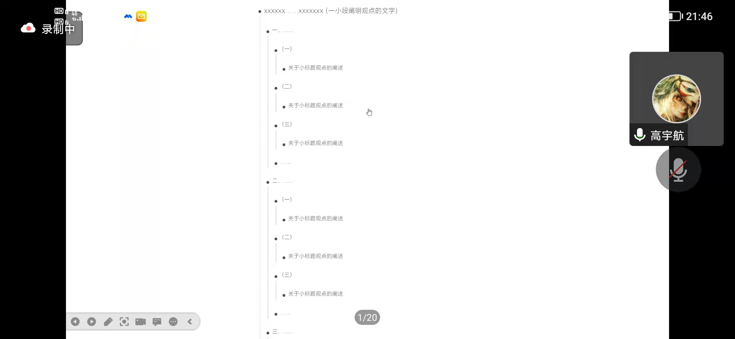 通过对自身考研历程的回顾,高宇航分享了自己在备考宁波大学时的心路历程与实考经验,并就相应的备考和心理疏导等方面给予了一些有效建议。高宇航从名词解释、论述题、应用题等不同题型入手,依次讲解了不同题型所需要的做题方法与技巧。对于名词解释,高宇航劝勉同学们多看真题并加以提炼,要合理帮助自己规划时间,坚持按分数写字数,用序号分层次,遇到实在不会的题目要理性跳过,不要死磕在一道题上,而要坚持系统观念,做好取舍,给自己一个积极的心理暗示。对于论述题的答题,高宇航强调要给自己留有容错时间,心中要掌握时间尺度,拒绝答题沉浸,要在看完题目后尽快动笔,先亮明观点,后分点论述,对此他结合自己答题实例,分享了自己曾经使用的答题模板和大标题套小标题的答题技巧,既做到条理清晰、又做到结构明了。对于应用题,高宇航指出要多积累相关专业知识以及特殊题型,做到防患于未然;要预先复盘总结,在进考场前准备好使用于自己答题的“心灵模板”,帮助自己及时进入状态,保持“下笔如有神”的姿态。