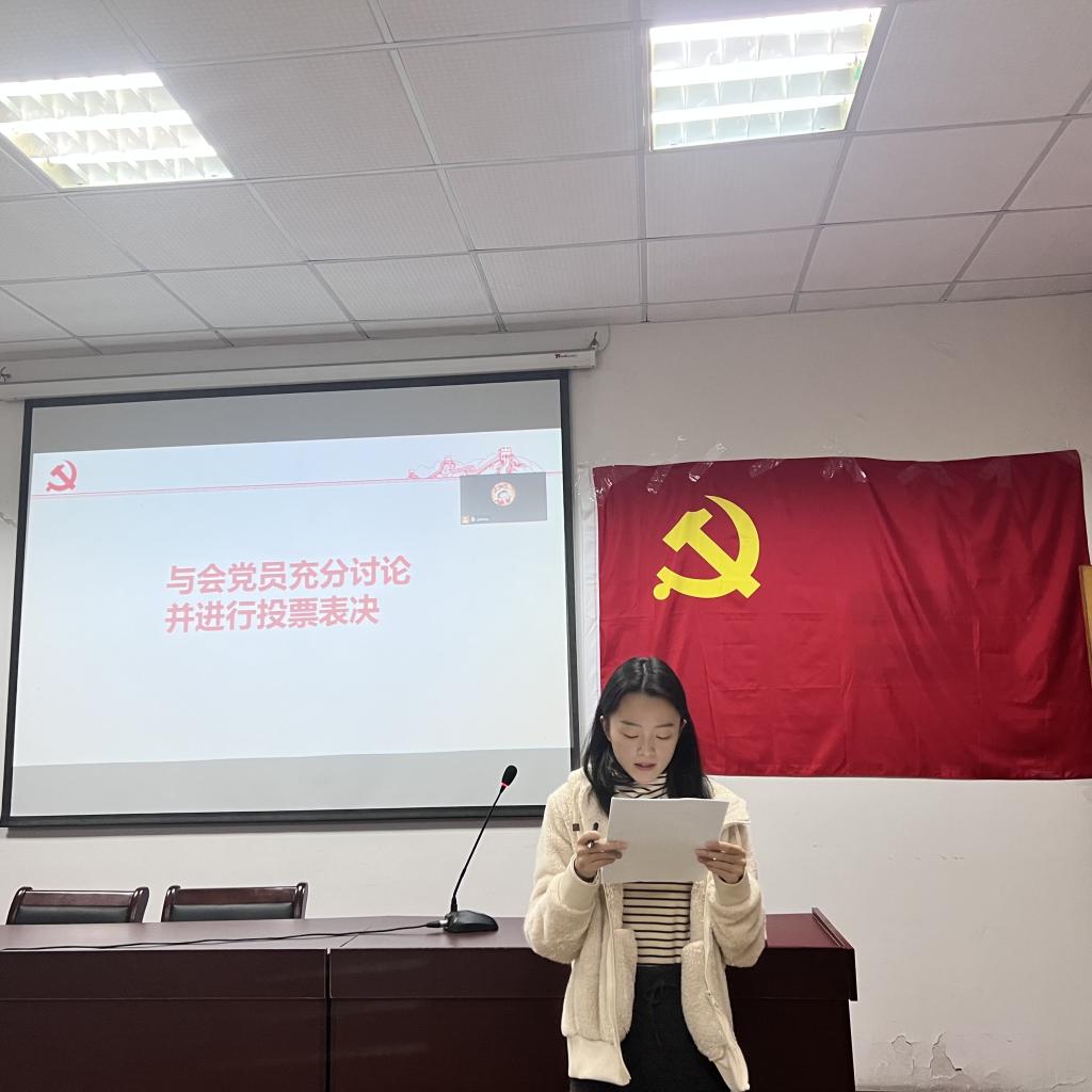 另外,12月14日下午,支部在公司502办公室召开了支部大会,讨论此前因疫情隔离的20级新闻学张雨瑄同学接收为中共预备党事宜。在校的7名正式党员参加,大会严格按照组织发展流程讨论了该同学发展,最终全票同意通过了接收张雨瑄同学为中共预备党员。