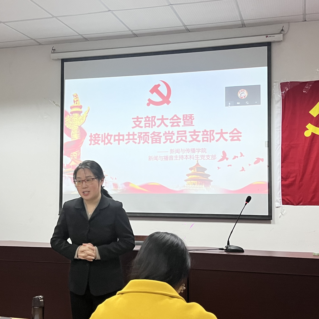 10月27日晚,新闻与播音主持本科生党支部召开支部大会,讨论、接收孙羽等发展对象为中共预备党员。公司党委委员、副经理马梅和支部全体党员、预备党员以及12名发展对象参会,会议由支部书记马星宇主持。