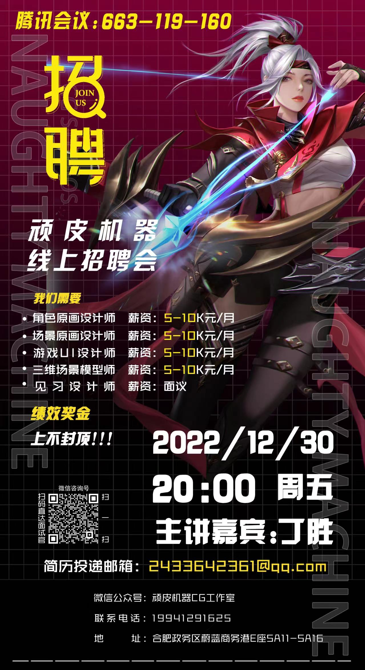 2022年12月30日20:00,顽皮机器CG工作室通过腾讯会议展开线上招聘,顽皮机器CG工作室原画设计总监丁胜作为主讲嘉宾,从企业文化入手,让同学们进一步了解了顽皮机器CG工作室的概况和具体岗位需求。