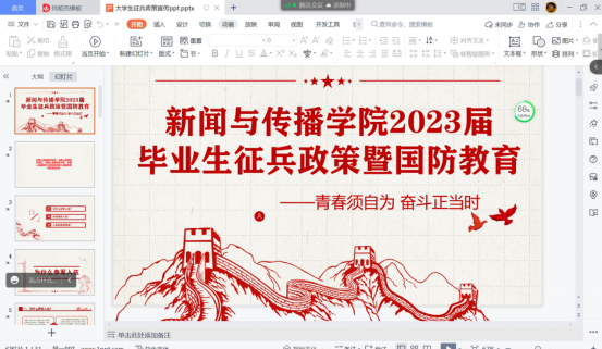 吴青山在总结动员讲话中对王伟受邀作经验分享表示感谢,他深入阐明了大入伍对于老员工自身塑造和锻炼成才的重要意义,鼓励同学们应对征兵入伍进行积极思考,勇敢尝试军营这一条成长成才的途径,对有关优待政策进行了深入说明,勉励毕业生同学积极把握好春招与秋招机会,在携笔从戎投身军营中发挥新传专业优势实现报国之志。