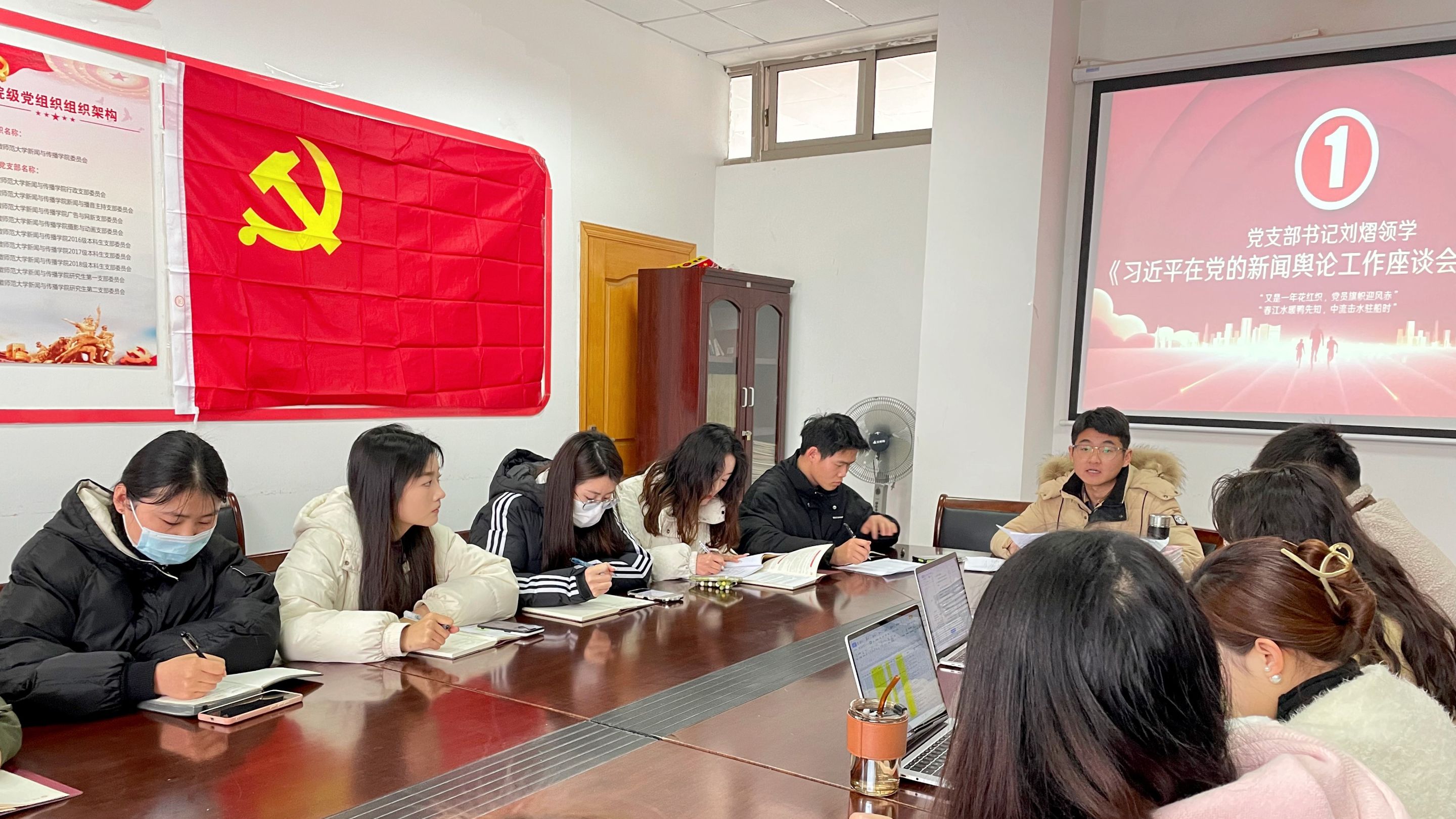 刘熠首先介绍本年度组织生活会的主题,带领全体党员认真学习习近平在党的新闻舆论工作座谈会上的讲话精神。刘熠要求党员同志们要坚定理想信念、充实家国情怀、培养仁爱之心。随后党支部宣传委员王仁强对上学期支部理论学习情况进行工作汇报,领学省委常委、省委宣传部部长郭强来校调研部校共建工作相关工作要求。