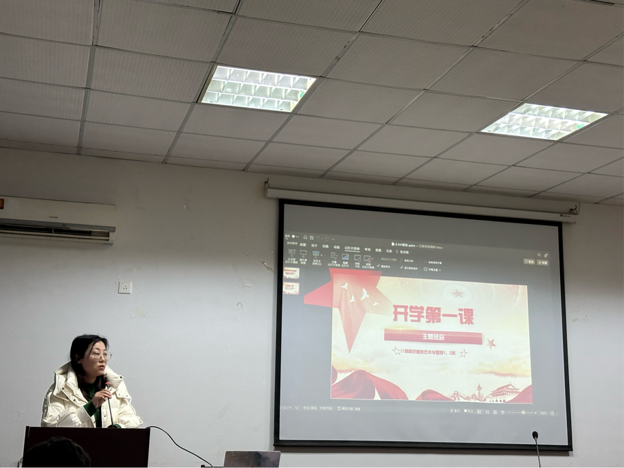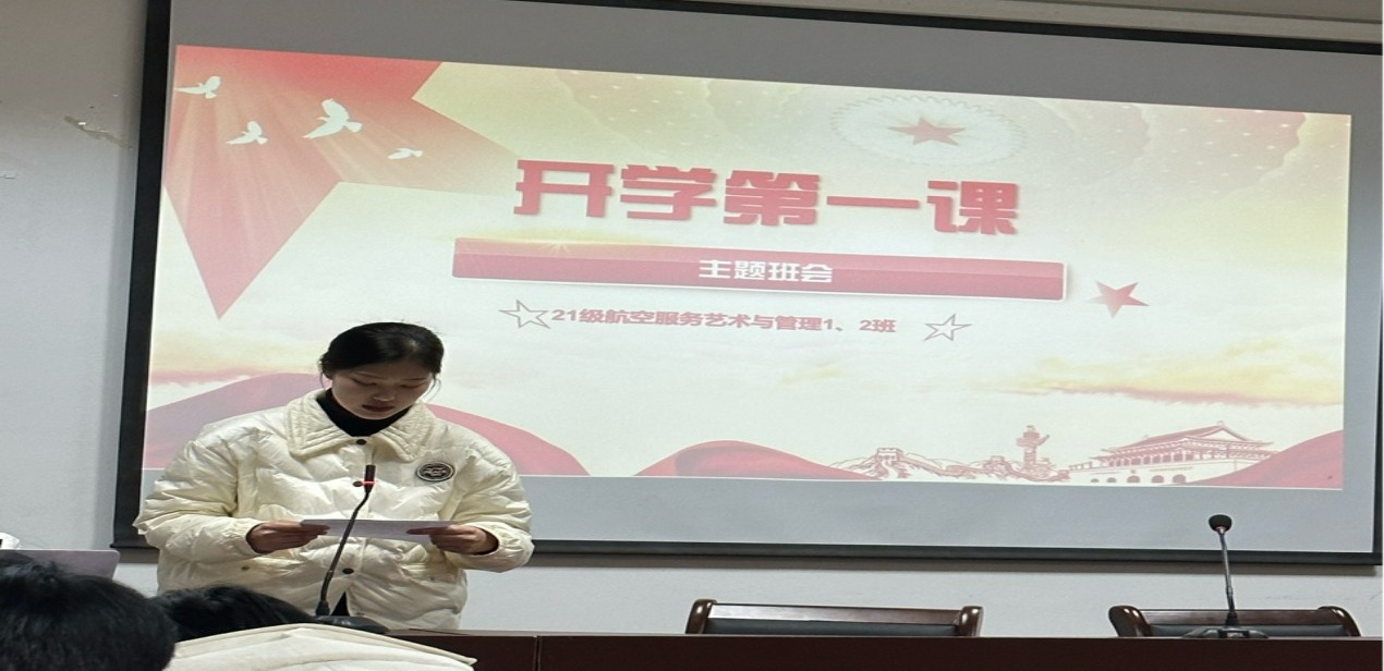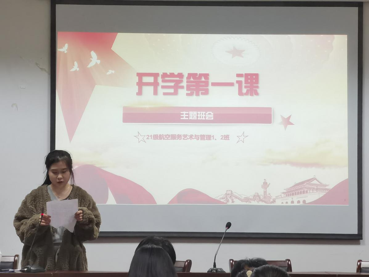 本网讯 (文/黄海玥、李春佳 图/黄海玥)为深入学习贯彻党的二十大精神,推进青年个人成长,分享在“爱国、团结、奋斗、科学、互助”五个方面的思考和实践,展示当代青年将个人成长融入国家、民族、社会的奋斗之中的风采,21航服1、2班于2月24日晚上在TapTap点点四楼会议室召开主题班会,全体同学和辅导员张雁老师参会,会议由团支书顾恒洋主持。