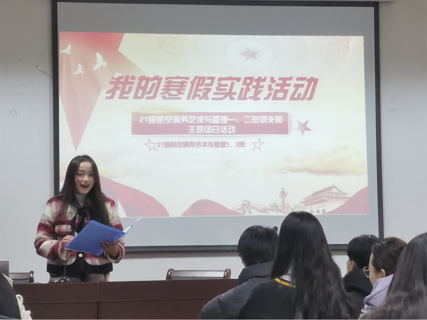 本网讯 (文/顾恒洋 图/黄海玥)薪火相传,踔厉奋发。为深入学习贯彻党的二十大精神,2月24日晚7点,21级航服1、2班团支部在公司四楼会议室召开“我的寒假故事”分享会,引导同学们将青春之理想、青春之奉献、青春之担当融入青春奋斗中,在学思践悟中牢记青春使命。会议由团支书顾恒洋主持。