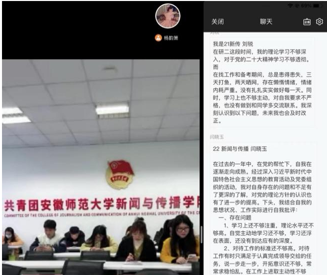 根据会议安排,在二月份理论学习的基础上,党支部全体党员围绕习近平新时代中国特色社会主义思想、党的二十大精神贯彻落实、继续深入党史学习等方面学理论、找问题、定措施。结合自己的理论学习、专业研究、社会实践与实习等方面进行深入剖析,围绕存在的问题开展批评与自我批评:刘锐同学觉得自己理论学习还应进一步加强,学习贯彻党的二十大精神一定要全面落实到自己理论学习、专业实践和生活等各个方面;邓珊同学表示自己学习和工作上容易产生满足感,今后会更严格地要求自己,坚持党性原则,用新党章的党员标准严格要求自己;闫晓玉等同学结合自己的思想状况、理论学习和专业实践进行了批评与自我批评等。杨韵箫支委希望支部所有党员都应坦诚相见、相互监督、严格要求自己,确保今后研究生第一党支部的各项工作更加扎实有效地展开。