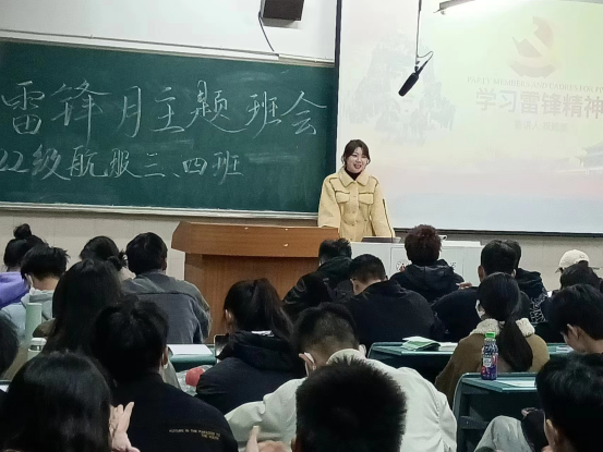 3月16日,22级航服3、4班辅导员祝婉新利用晚自习时间,在班级内召开学习雷锋主题班会,全体员工认真倾听学习雷锋班会内容,图文并茂,同学们一目了然。