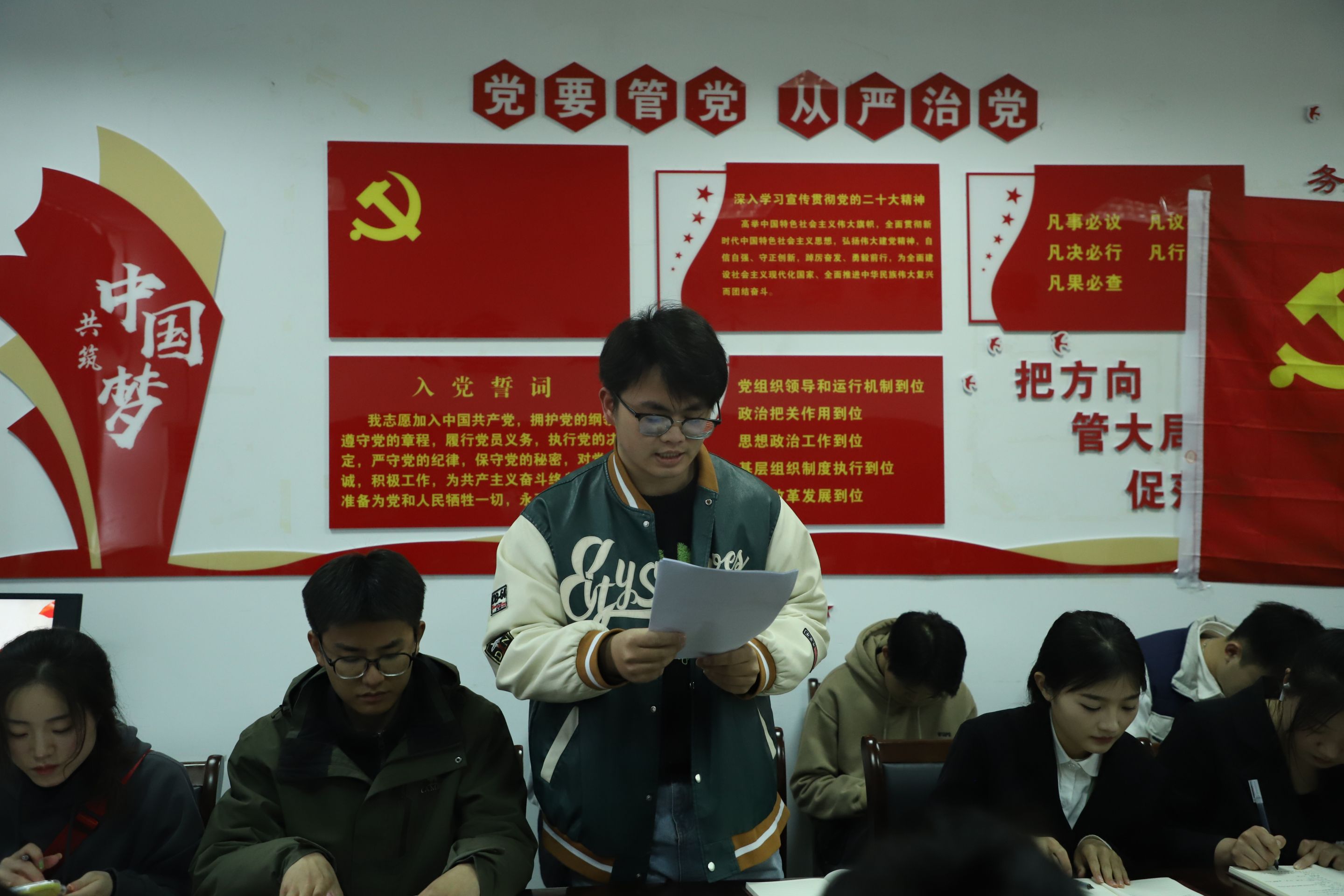 会上,上一批次发展为预备党员的孙铭联、梁亚梅、窦震宇等9名同志进行入党宣誓。董新雨、王海旋、宋婷婷3名发展对象逐个向大会宣读入党志愿书及汇报需要向党组织说明的问题,入党介绍人王仁强、祝婉新介绍发展对象主要情况,并对其能否入党表明意见。纪检委员李露露向大会报告对申请人培养过程、审查情况,与会党员对申请人能否入党进行讨论并发表意见,正式党员进行投票,纪检委员李露露宣读投票结果。组织委员祝婉新对一季度党费收取情况进行公示,支部书记刘熠作入积材料整理专题培训。