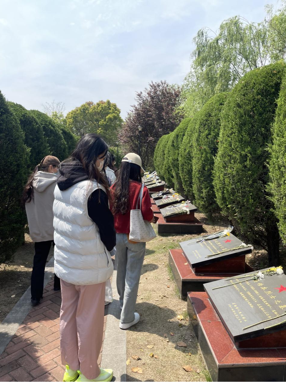 参观完烈士纪念碑并且进行献花礼,团支书孙盈带领着团员代表们对余下的墓椁一一进行参观与打扫,真正将“扫墓”落实到实际。团员代表们每个人都沉下心来仔细观看着每一块墓碑上的文字记载,上面或详细或简略地记载着每一位长眠于此的烈士的生平与功绩。他们的事迹永远激励着每一位前来祭奠他们的后辈,当然也包括我们本次前来的团员代表们。