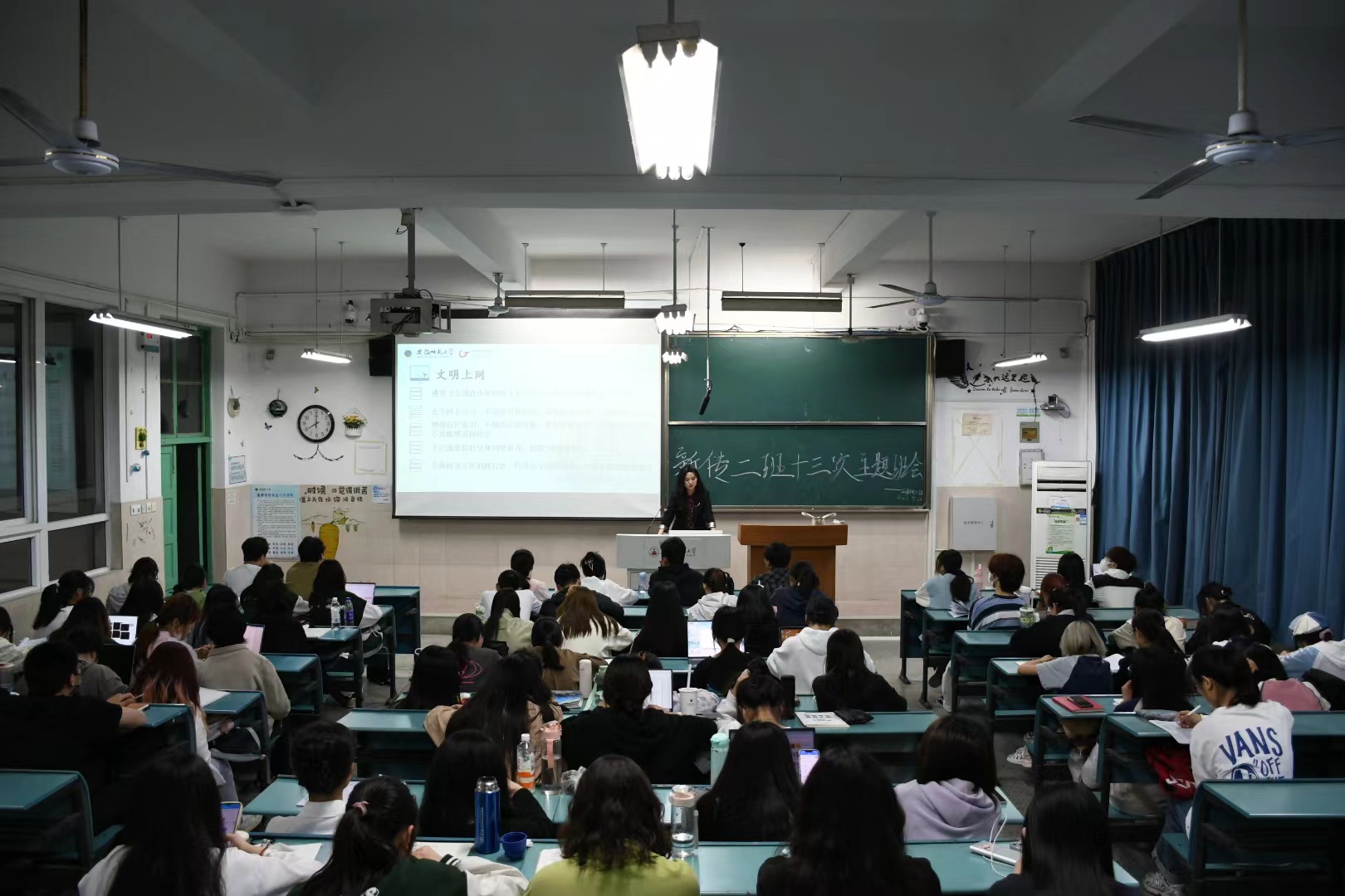 李梦圆指出,为了营造良好的学习氛围,要突出文明教室建设,自觉遵守《TapTap点点官方网站教室文明公约》,深入开展优良学风建设主题活动,遵守课堂纪律和礼仪。特别强调教室卫生要在班委和同学们协同合作下,共同打造干净整洁的教室环境。针对宿舍文明建设,李梦圆强调要贯彻落实一站式员工社区试点活动要求,保持良好的寝室卫生环境,形成优秀的寝室文化。李梦圆对于日常交往文明向同学们提出了建议,要树立正确的友谊观、恋爱观、消费观等,男女交往要自尊自爱、举止得体。在平时的生活中要注意网络文明,要增强自护意识、增强辨别不良信息的眼力,自觉维护网络安全、不破坏网络秩序、不发敏感虚假信息,争做网络文明的践行者、网络安全的守护者、网络正能量的传播者。