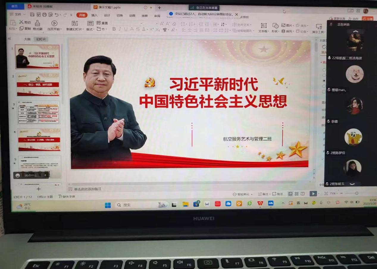 5月20日,22级航空服务艺术与管理专业二班团支部线上召开学习贯彻习近平新时代中国特色社会主义思想主题教育团课,会议由团支部书记米倩瑶主持,辅导员汪笑笑参会。