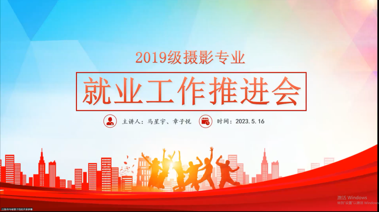 2023年5月16日晚,2019级摄影专业就业推进会暨秋季征兵入伍动员会于腾讯视频线上召开。会议由辅导员章子悦主持,辅导员马星宇主讲,2019级摄影专业未就业同学参加会议。