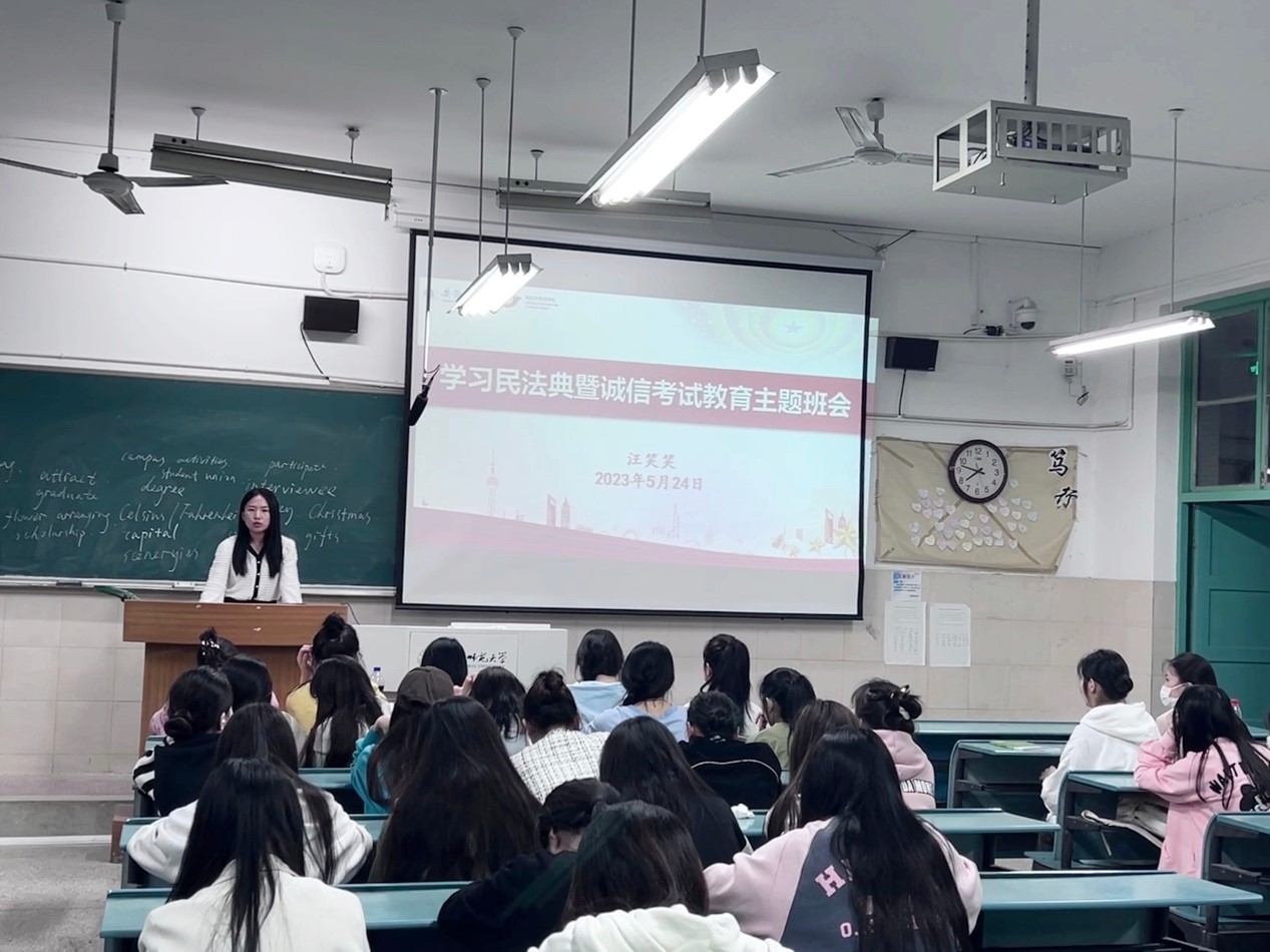 本次主题班会通过学习《中华人民共和国民法典》,使同学们对我国法律体系和权益保护有了更全面的认识;通过诚信考试教育,增强了同学们的诚信意识和道德观念,在潜移默化中让同学们认识到诚信考试的重要意义。