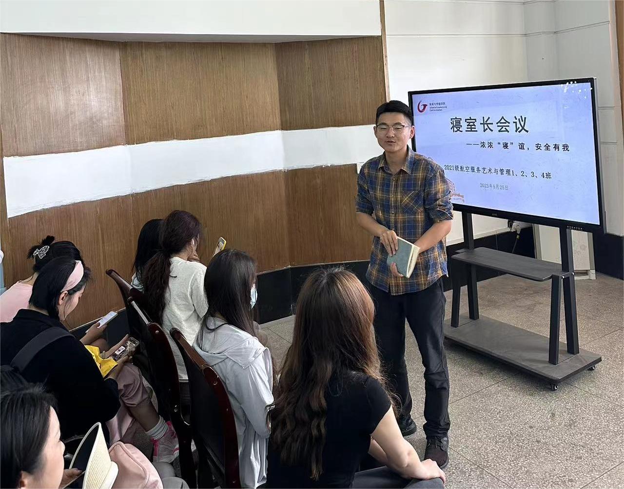 5月25日,21级航空服务艺术与管理专业4个班在圆形报告厅二楼召开了寝室长会议,会议由生活辅导员俞应芬主持,辅导员张雁、刘熠参会,航服专业21级全部寝室长一起参加会议。