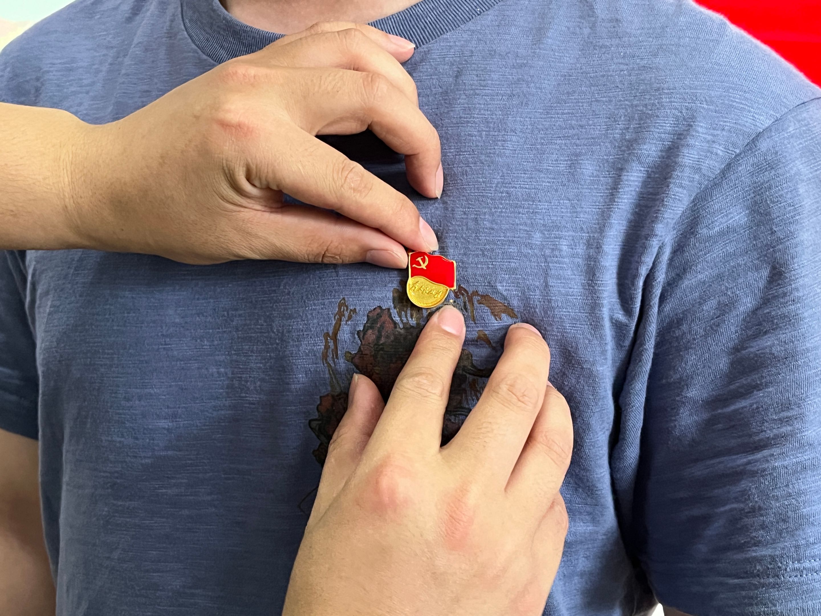 随后,今年3月接收的3名毕业班预备党员张文文、任浩源、付雯婷在胡晓荷同志领誓下进行入党宣誓、佩戴党员徽章并合影留念。新接收的预备党员代表姚巧巧、岳皞伟及转正党员代表姚其玮、张甜作表态性发言,一一讲述了自己的感受,表达了自己作为党员的抱负与使命。