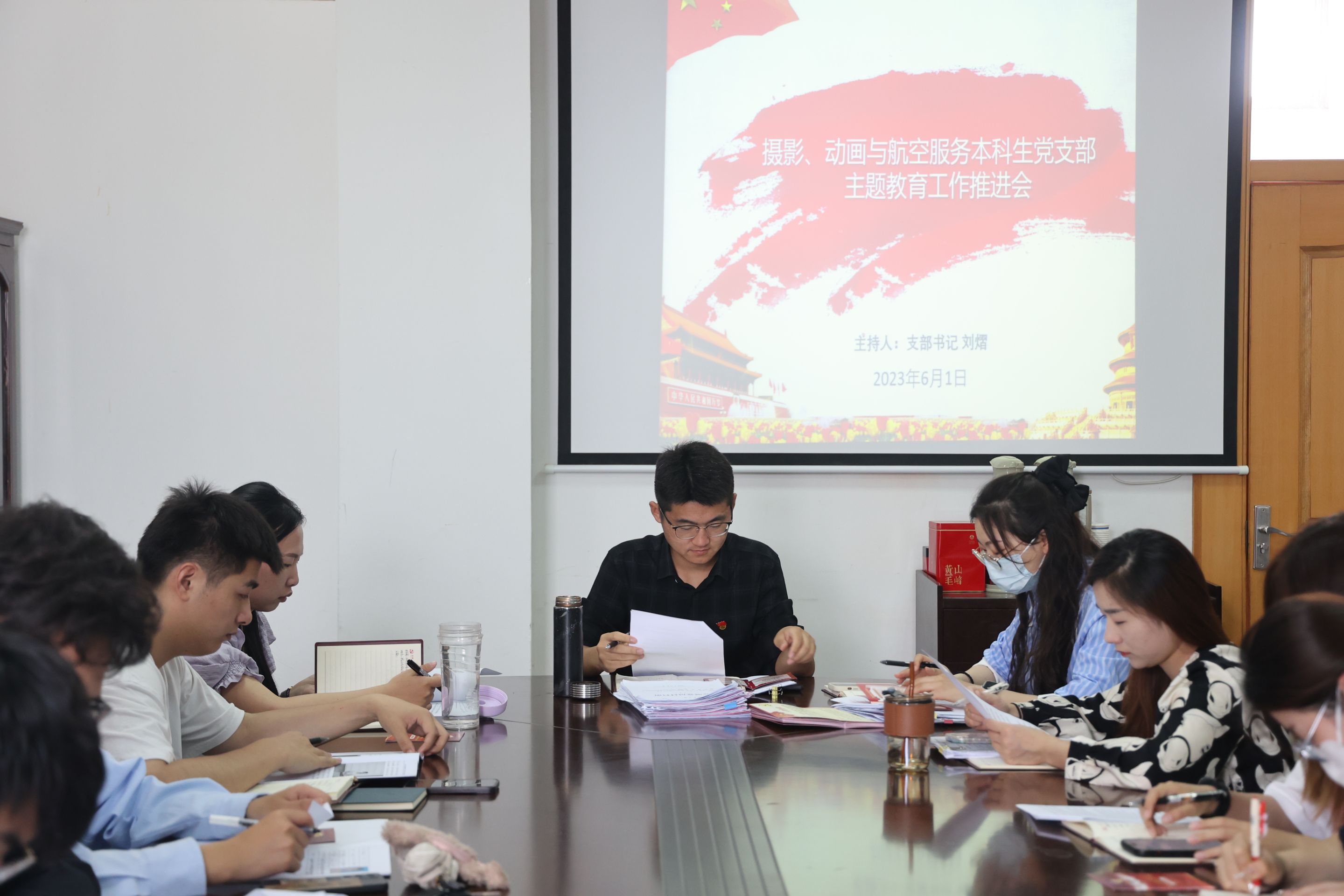 6月1日,摄影、动画与航空服务本科生党支部在公司楼508会议室召开党支部大会,讨论接收发展对象徐雨晴等8名同志为预备党员以及讨论预备党员李斌等6名同志的转正事宜。大会由党支部书记刘熠主持,公司党委副书记吴青山、支部支委祝婉新、李露露、王仁强,支部正式党员、预备党员、发展对象参加此次会议。