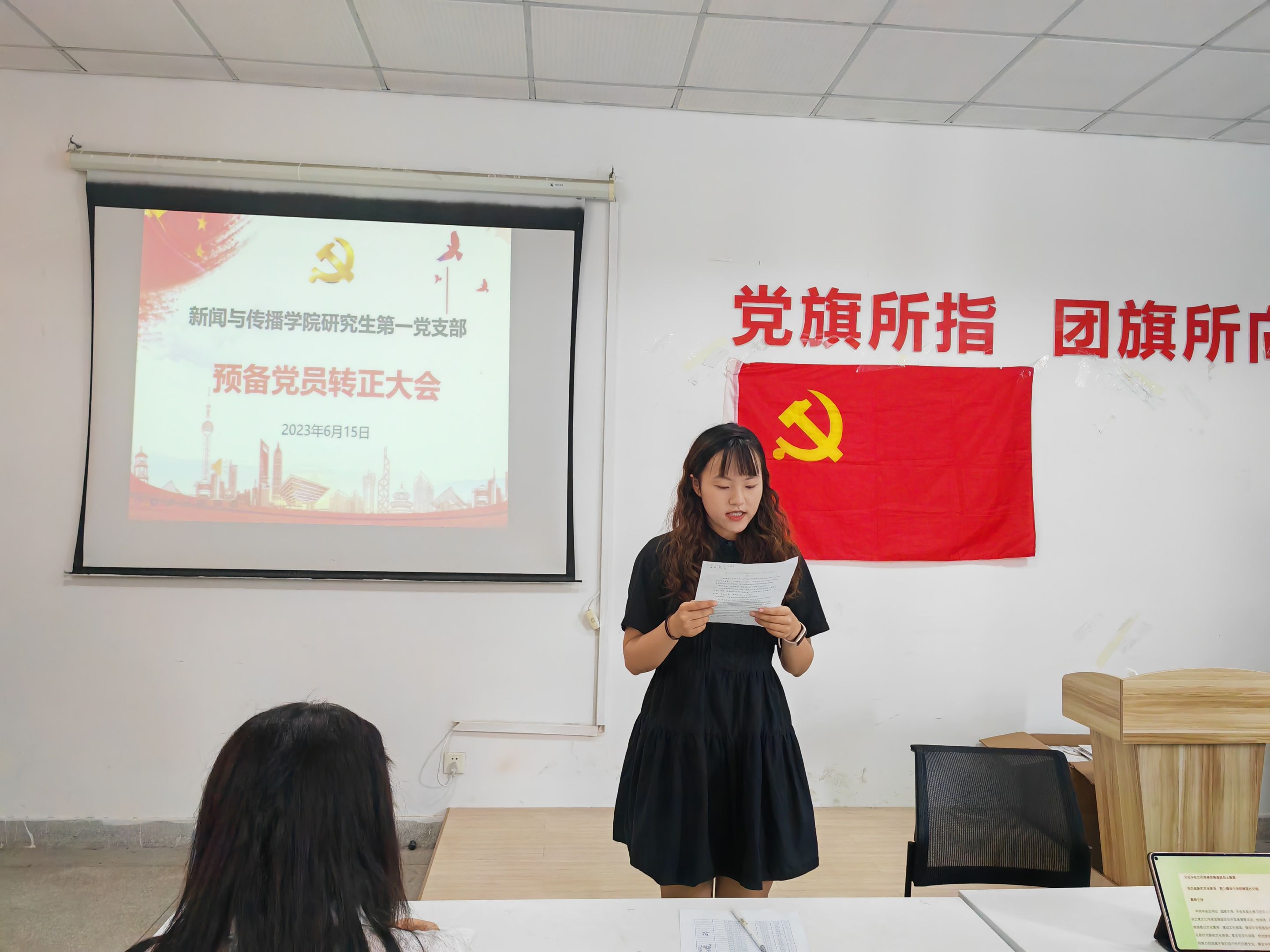 在全体党员起立奏唱国歌后,本次转正的预备党员赵晴晴、曹甜甜、吴海涛、刘波、范玥、林婷敏同学逐个向支部大会全面地汇报了自己在预备期内的表现,按照党章要求认真全面地总结了自己在理论学习、思想表现和学习、生活等各方面的表现情况,向党组织表明了自己的志愿、决心和态度。各预备党员培养联系人分别向大会介绍了对六位预备党员教育考察情况,对其能否按期转正表明了自己意见。