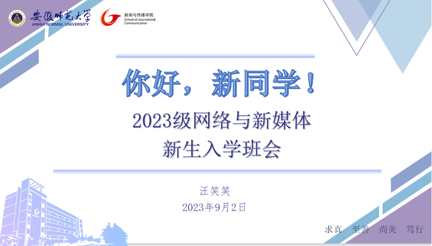 为了能让员工更好地认知角色变化、适应老员工活,发现新自我、确立新目标,2023级网络与新媒体专业新生入学班会于9月2日晚在教学楼2010202教室举行。本次班会以“你好,新同学”为主题,为新生大学求知路指引了方向。会议由辅导员汪笑笑主持,2023级网络与新媒体专业全体同学参会。