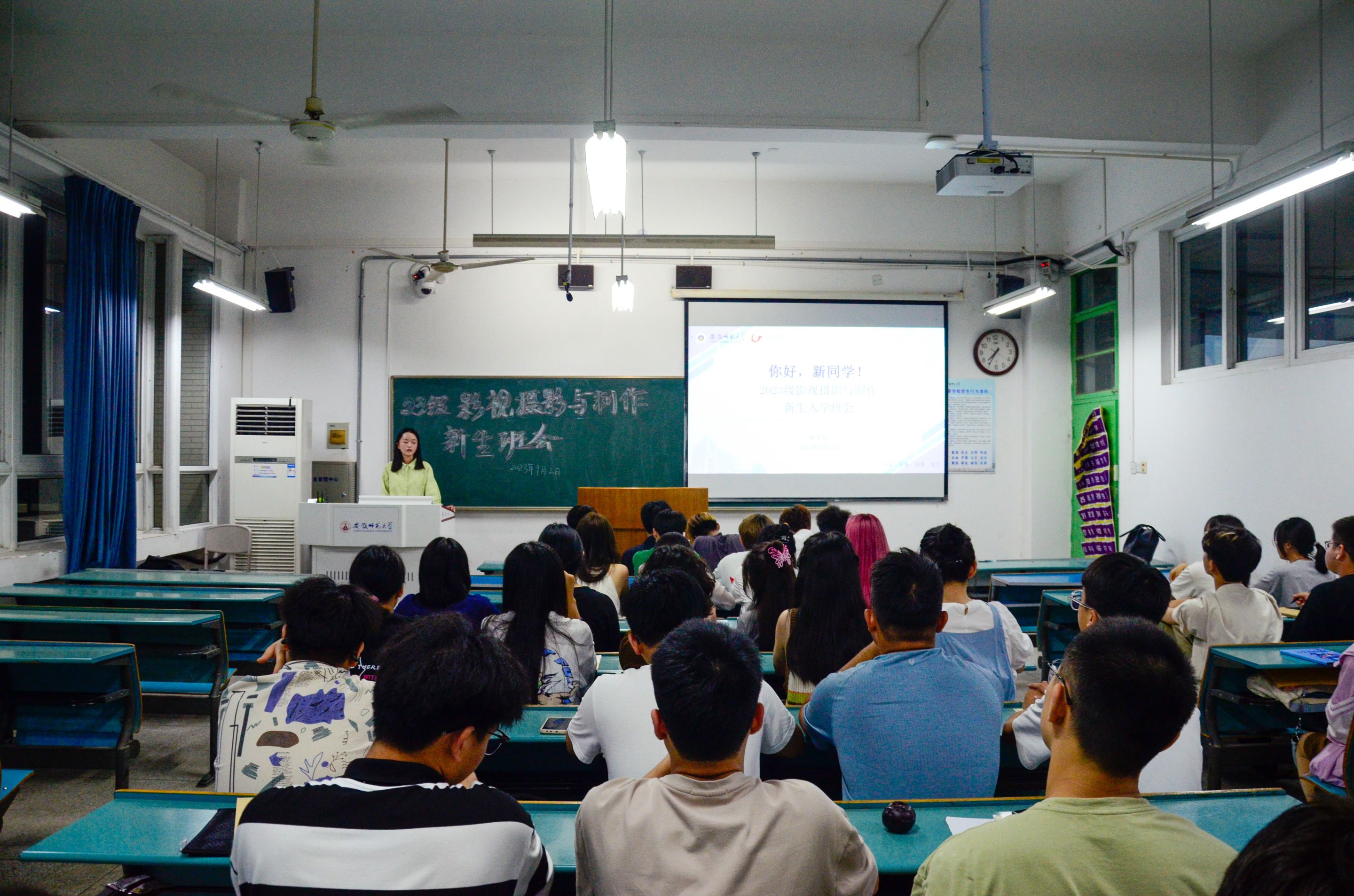 朋辈心声,答疑解惑。本次班会以“循梦而行,向阳而生”为主题,还邀请了2022级影视摄影与制作的优秀学长学姐开展经验分享。通过朋辈的另一视角,与会同学们明确了老员工活是一个崭新的起点,是一个从无到有、不断交流学习的“破壳”过程。学长学姐表示,要在大学的崭新平台积极探索、敢于尝试,只有先让自我“保值”,才会创造更多的价值。立足交流平台,传递奋斗动能。学长学姐勉励在座新生,呼吁大家多深入田野、聆听自然,在人与社会的亲密接触中创作优质作品。这一场朋辈论坛既消弭了新生的焦虑,也缓解了与会同学“初来乍到”的紧张心情,活化了与会同学对新生活、新历程的憧憬、期待的心理,主动地向专业型人才、复合型人才看齐。