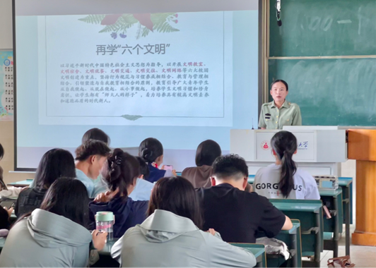 再学“六个文明”。首先,汪笑笑带领同学们重温了“六个文明”教育实践的具体内容,对近期的教室卫生、宿舍卫生检查情况进行通报,强调电动车出行安全,引导同学们从自我做起、从现在做起、从小事做起,培养良好的文明习惯和修身意识。