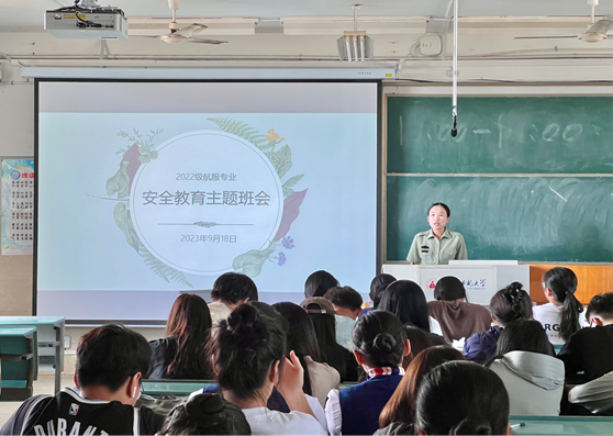 为进一步加强安全主题教育,敲响安全警钟,引导员工提高安全防护意识,落实国庆假期注意事项安排,22航服1、2班于9月18日上午在教学楼2010606教室召开安全教育主题班会,会议由辅导员汪笑笑主持,22级航服1、2班全体同学参会。