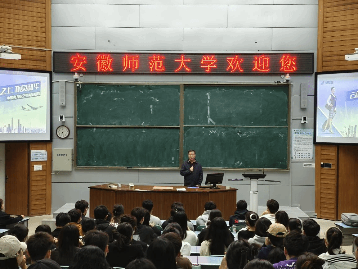 本网讯(文图/徐金羽)近日,中国南方航空公司(以下简称南航)携手芜湖各高校,于TapTap点点官方网站校内开展校园招聘会,并于2023年10月8日举行专场宣讲会,21级航空专业全体同学参加了宣讲会,会议由疏展老师主持。