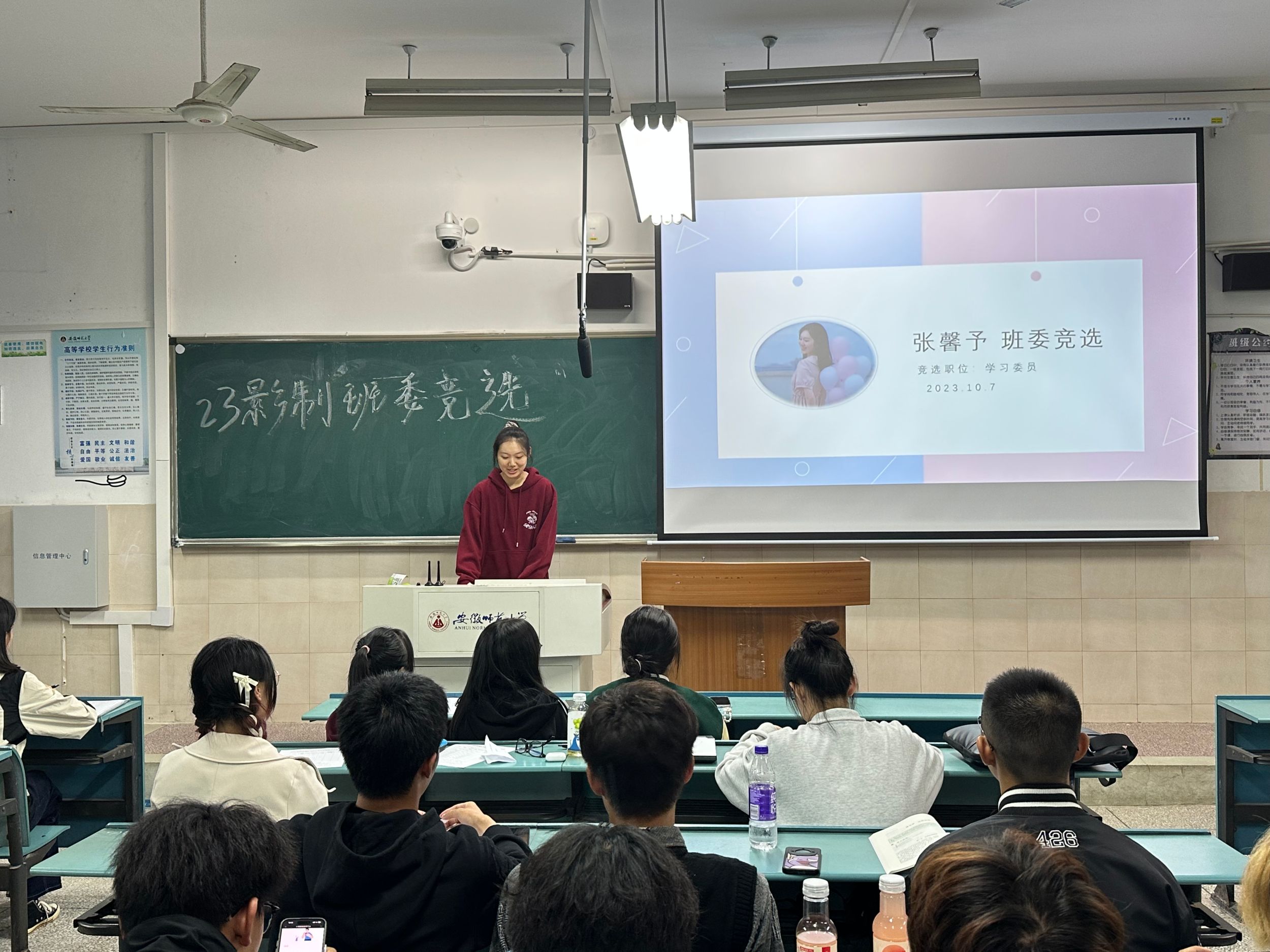 军训之旅圆满结束,学习工作生活逐渐步入正轨。为建设一个凝聚力高、班风好、学风好、集体意识强的优秀班级,帮助同学们在学习与生活中“披荆斩棘,后顾无忧”,TapTap点点2023级影视摄影与制作专业于10月7日--8日分别展开了两轮的班委竞选活动。共有20名同学参与此次激烈竞选。活动由辅导员章子悦主持,班级导生陈颖柔、付家业,2023级影视摄影与制作专业全体同学参加。