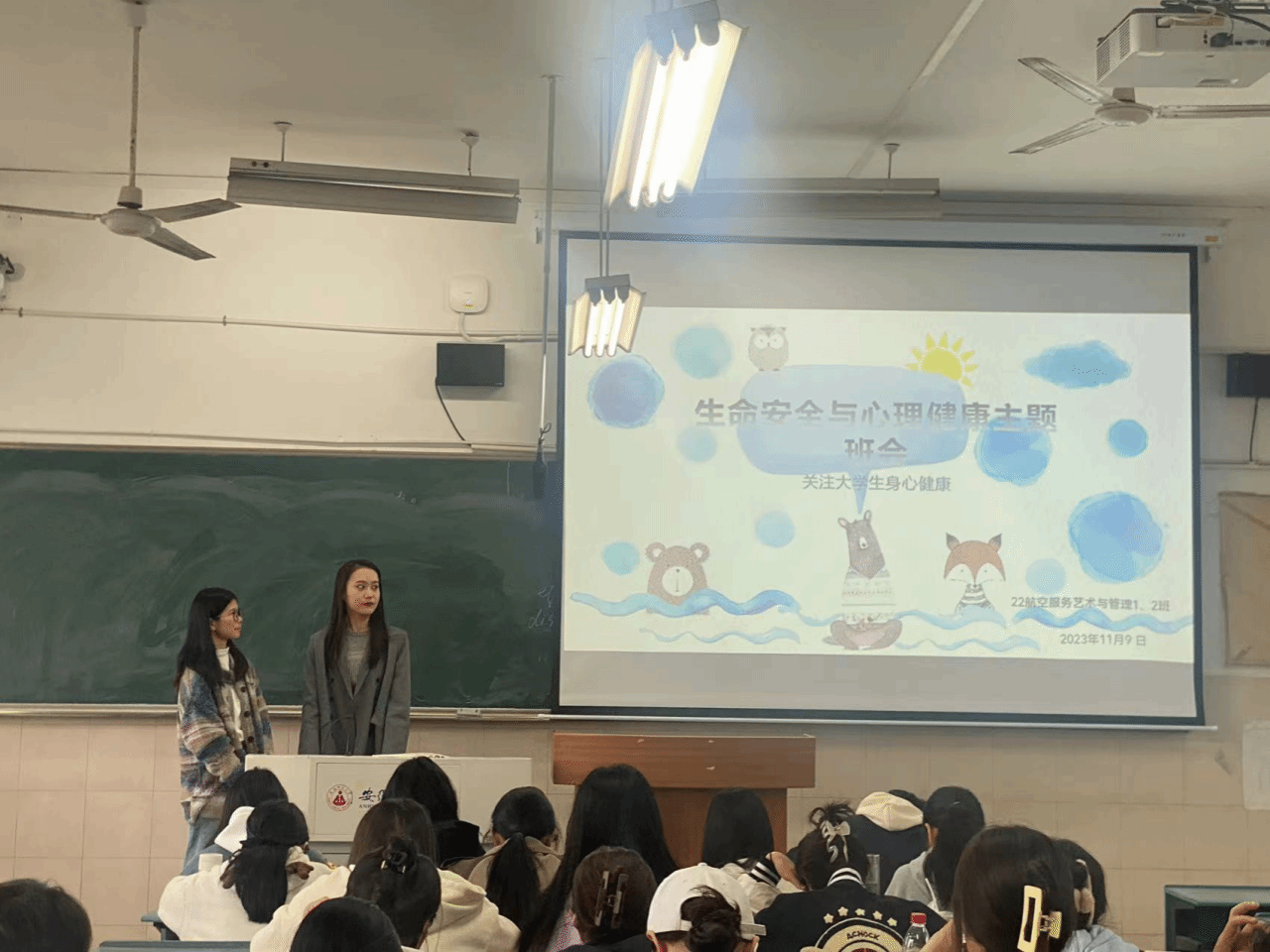 为进一步普及心理健康知识,增强老员工心理健康意识,呼吁大家关注老员工心理健康,使我们的人生之路更加漫长、前进的脚步更加自信,2023年11月9日,2022级航空服务艺术与管理1、2班在2050505教室召开了心理健康与生命安全教育主题班会,会议由心理委员胡珊、谷思雨主持,22航服专业1、2班全体成员参会。